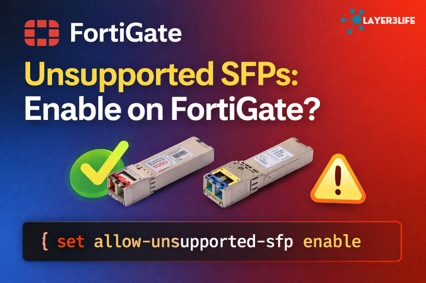 In real-world scenarios, there are deployments where we need to consider vendor interoperability—especially when it comes to SFP modules. Whether it’s due to requirements, cost optimization, restoration, or troubleshooting, this becomes a key factor in network operations. One common issue arises when using non-native or unsupported SFP modules, and this is where FortiGate commands come […]
